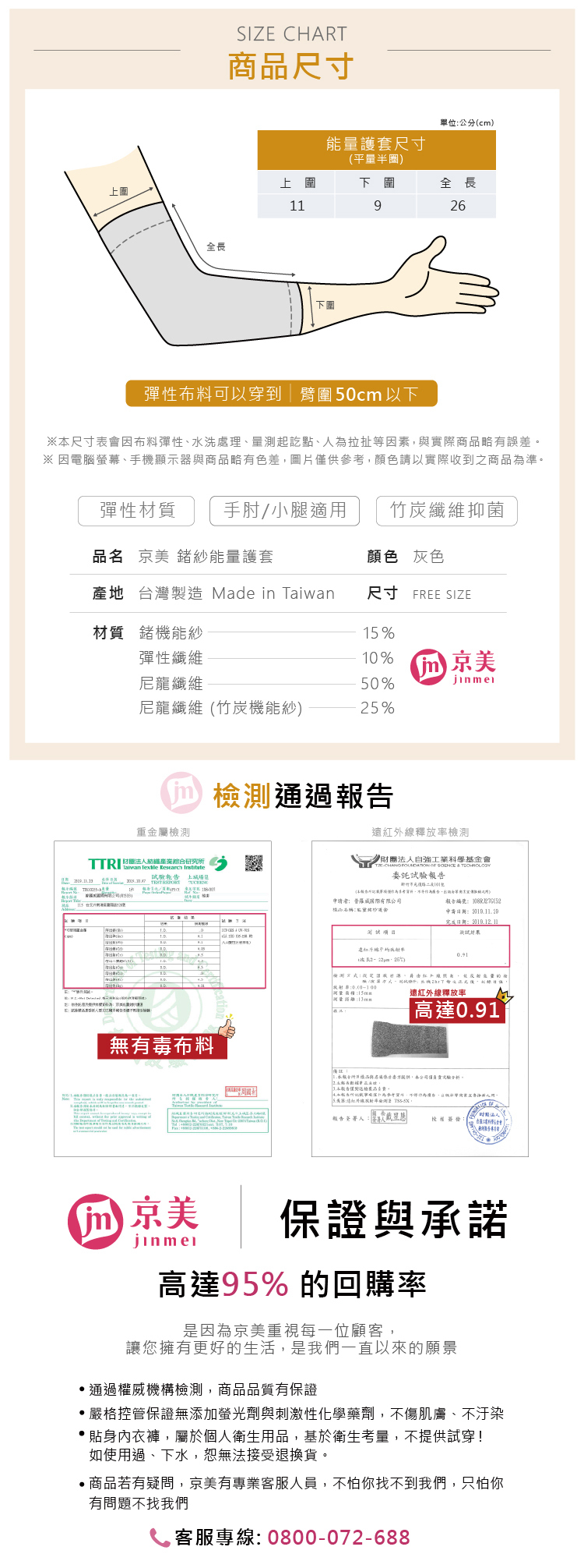 成分:竹炭機能紗25%、尼龍紗50%、鍺機能紗15%、彈性纖維10%